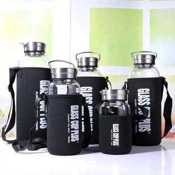 Bán buôn nhà sản xuất thép hàng đầu nắp chai nước thủy tinh 1500ml 600ml 1000ml thể thao phòng tập thể dục chai nước với xử lý và tay áo